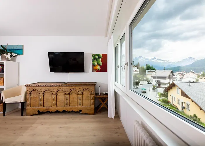 Az 1 szobás Apartment Tinus - 3 Min Walk To Ski Lift St. Moritz olyan turisztikai látványosságok közelében található, mint a körülbelül egy 5 perces sétára található Schiefer Turm. A 45 m²-es apartman szabadidős lehetőségei magukba foglalják a síiskolát, ami jó hír a sí szerelmesei számára.
